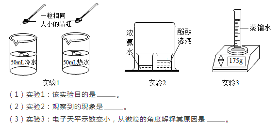 1. 探究温度对分子运动的影响 2.酚酞溶液变红 3.水分子扩散到空气中,质量减少。